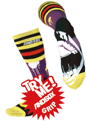 ANDSOXにNEWライン登場。 その名もアシンメトリー。左右違うカラーのソックスが1対になっていていままでのANDSOXより個性的になります。 アスリート向けのソックスに用いられるグリップ力の強い塩ビ製のグリップをつま先からかかとにかけて採用。また、ドイツ・バイエル社開発のdralon綿 糸(コットンとアクリルのハイテク混紡糸)を使用し、綿の2.5倍の吸汗速乾を兼ね備え、肌触りがよく抜群の履き心地!さらに、コダワリの編み方で、機能 性&快適性を兼ね備えた究極のソックスです。