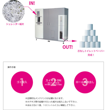 オフィスにかかる費用って色んな項目が挙げられます。ことあるごとに費用対効果を見据えたジャッジが重要になってきたりします。そんな中イニシャルコストとランニングコストの考え方も重要です。安い買い物ではないけれど、自社に生産システムを持つことはそれだけで企業アピールの一つになりえると思います。買うのは当然、捨てるのもただじゃない!文書がトイレットペーパーに変わる!夢見たいな本当の話です。