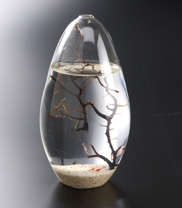 忙しいビジネスライフの中で、時には海外のビーチなんかでのんびりと過ごしてみたい。そんな欲求に駆られる事もあります。「HOLOHOLO」とは、ハワイ語でふらふら散歩という意味。小さなアクリルケースの中に海藻と一緒にスカーレットシュリンプと呼ばれる体長1〜2cmの真紅色のエビが入った完全循環型の生態系を持つBOXです。小さなエビたちがユラユラとBOXの中を散歩している姿は、見ている人の心を癒しへ導いてくれます。考え事をしている時に何気に眺めてみたり、普段関わり合いの少ないあの人ともこれがきっかけで会話が生まれたり、そんなシーンをついつい想像してしまうこのアイテムってある意味重要なビジネスツールなのかも知れません。