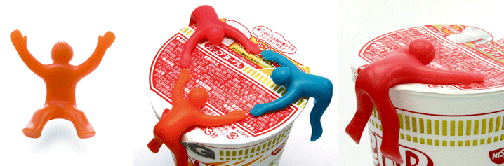 なんと直球のネーミング!カップ麺ができるまでの3分間。いつもはクルリとめくれるフタをお箸で抑えたり、身の回りにあるもので抑えたりしますが、これはそのためだけに生まれたグッズです。人はどれだけモノが必要なんだろう?食べごろになる3分間を、あなたのためにcupmenは崖っぷちで必死にがんばっている。この健気なフォルムに思わず見入ってしまいます。さらにお湯の温度でみるみる体の色を変化させて時間の経過を知らせてくれます。出来上がりを待つ3分間をいつもよりちょっとだけ楽しい時間にさせてくれる健気なやつです。