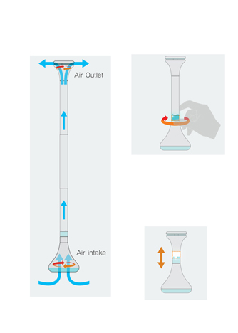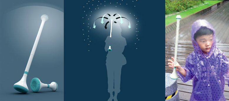 なぜこれほどの数が売れるのかと言うと、ビニール傘は長く使われないから。ビニール傘は、すぐ折れるし、すぐ骨が錆びてしまう。そして安価な為、傘は使い捨てと言う考えが主流になってしまっています。その結果、年間1万6千トンの傘が廃棄物となってしまっている現状。「AIR UMBRELLA」が一般的な傘と異なる所は、傘布の代わりに空気の壁を利用することで雨から身を守るという点。底面部分から空気を吸い上げ、ステッキの先端から吸い上げた空気を噴射して空気の膜を作るという仕組みなので、傘布を支える骨の部分が折れたり錆びたりする心配がないのに加え、そのインパクト抜群の外観から置き忘れや使い捨てされる事もなさそう。そして何よりその魔法の杖の様なビジュアルで使用時には目立つこと請け合いです。コンセプトモデルなのでまだ実際に販売はされていない様ですが、こんなハイテク傘で通勤すれば憂鬱に感じていた雨の日もまた待ち遠しく思えるかも?もちろん日傘には使えないようですのであしからず。