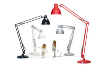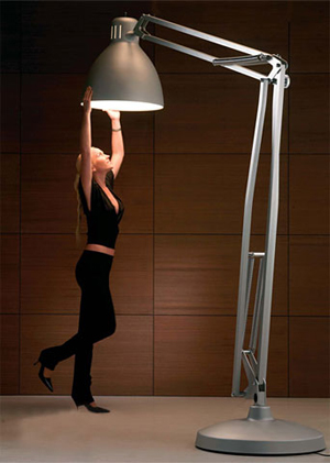 当たり前のことですが、身の回りにある道具たちは、人間が使いやすいように作られたもので、当然その大きさや用途も人間の大きさを基準に作られています。ではその基準を外して作ったらどうなるのか。。このThe Great Oneは、人間のスケールにあわせて作られたはずのデスクライトが巨大化したものです。写真を見る限り、人間の大きさとの比率が知っているライトとは違いすぎて違和感を覚えてしまいますが、「大きいだけ」と侮るなかれ。そこが逆に新しい空間性を感じさせてくれます。まるで小人にでもなった気分。そしてこの商品の最も凄いところは、巨大化しても人間のスケールで成立しているところ。手元を照らすはずだったデスクライトが巨大化すると、テーブル全体や部屋全体を照らすペンダントのような役割になっています。ただ、バネやアームも忠実に巨大化しているので、無骨な感じは否めません。っていうかそこが素敵なんですけどね。