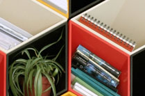 面とも立体とも見える本棚。その不思議な見え方もさることながら、柔らかい雑誌などもへたることなく収納でき、グリーンや雑貨などを置くことで彩り豊かなインテリアへと変化していきます。見せ方・活かし方は工夫次第。なによりその形状が気になりますが。錯覚がもたらす空間の豊かさを体験してみたくないですか。