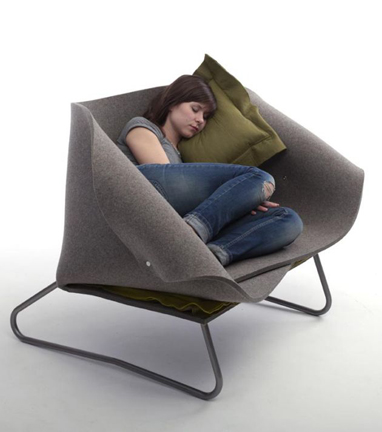 As soon as I saw this chair, I knew that I that I wanted it, and the faster it arrived in my life, the better. It would fit nicely in any number of work or home spaces and it just cries out to be sat in. If placed in a work space, it provides the perfect retreat for hard-thinking sessions, or time-outs from hard-thinking sessions. If placed in a living space, it provides a relaxation zone for those quiet nights in or an intimate chat space for close encounters. The gentle curves of this chair’s form are reminiscent of a mother’s shoulders without being overwhelming gender specific. I also love that it looks so cozy and inviting without looking childish. If I had to show a hug in chair form, this would be it. And because no matter how old you get, you are never too old for a hug, whenever I finally acquire this chair, I know that I will be ecstatic.[Text by Beverly Karhson]