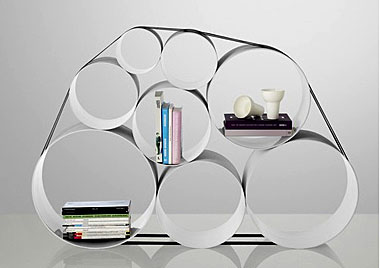 もうすっかり春ですね。春と言えば、別れと新しい「出会い」の季節。そんな移ろいゆく現代人の生活スタイルにぴったりな収納を見つけました。大小の円柱形のパーツを組み合わせて作るこの収納は、バンドで囲っただけのシンプルな構成ゆえ、自由自在なレイアウトが可能。サイズや形を簡単に変えることが出来るので「この家具と壁との微妙な隙間が気になる…」なんて事ももうありません。円柱形のモダンな顔して、本や植栽なんかも意外と安定して置けちゃう優等生なんです。