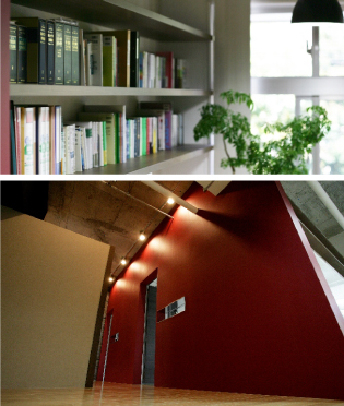 いくつもの案件を抱え、個人で集中して作業を行なうことの多い弁護士と言う職業。そんな多忙な日常の中、社内でのコミュニケーションはどのように行なわれているのだろうか。「一週間に一度、短時間のミーティングの時間があり、弁護士と事務員とで事務所の改善点や購入が必要なものなどについて話し合う時間を設けています。執務室では個々人が集中できる環境と、話し合いが簡単に出来る環境の両立が重要だと思います。パーティションで空間を仕切ることも一つの手段としては有効かもしれませんが、同じ列に並ぶことによって得られる一体感やコミュニケーションのしやすさを優先し、パーティションは設置していません。」事務所内のデスクは、仲西弁護士のデスクを除いて、すべて外側を向いている。机の上には本棚を設け、作業をしながら参考文献や判例資料、依頼者のファイルをすぐに手に取れるようにしてある。そしてワークスペースの中央には、将来的にミーティングとリフレッシュを両立できる卓球台を設置する予定だそうだ。